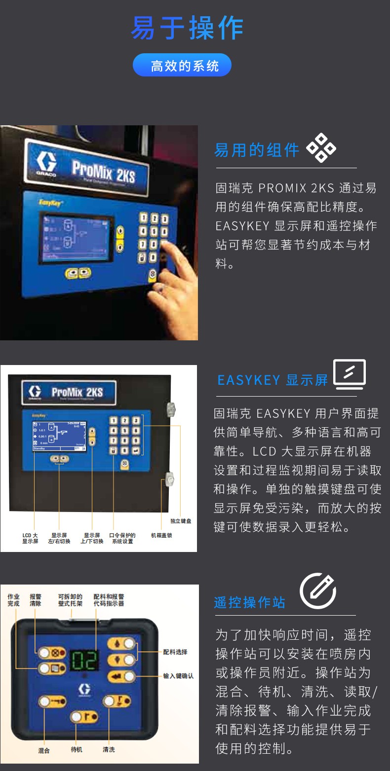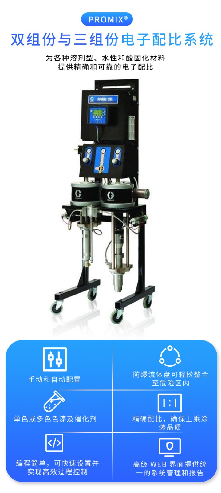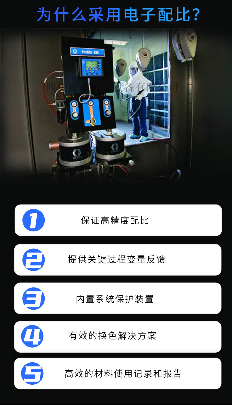 Official agent of Graco in the United States, the two component and three component electronic proportioning system provides reliable electronic proportioning for various solvent based, water-based, and acid cured materials.